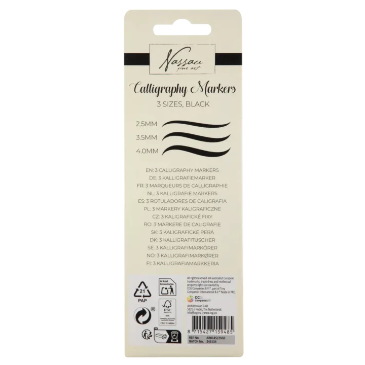 Zestaw czarnych markerów do kaligrafii w 3 rozmiarach