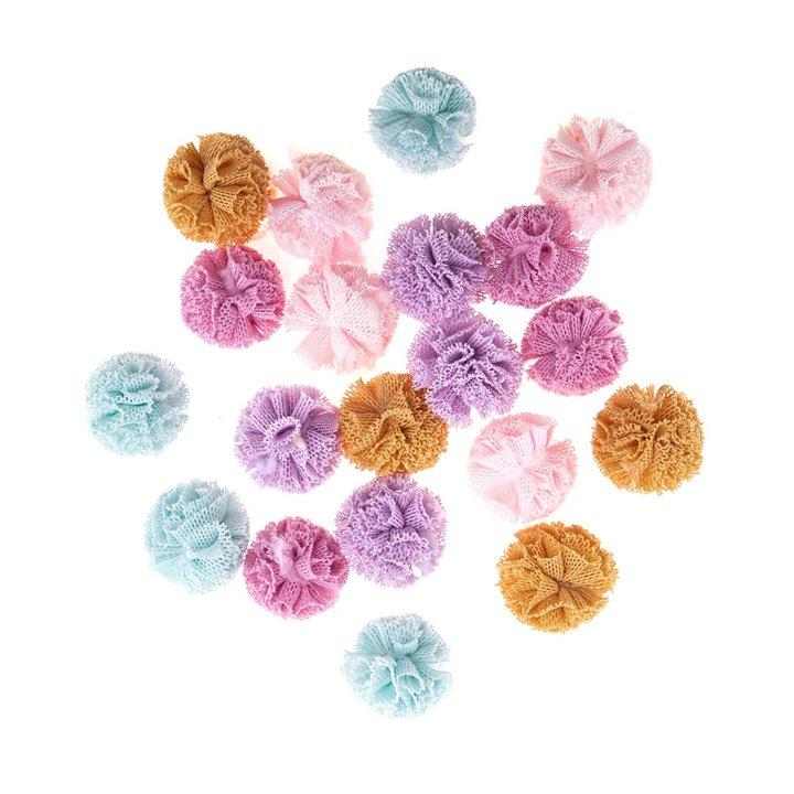 Úvod » Hobby materiały » Pompony tiulowe do rękodzieła | 20 sztuk, pastelowe kolory, 2 cm