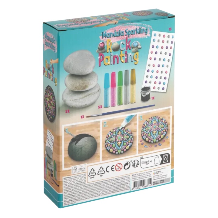 Úvod » Kreatywne artykuły dla dzieci » Zestaw do malowania mandali - 3 kamienie i błyszczące farby