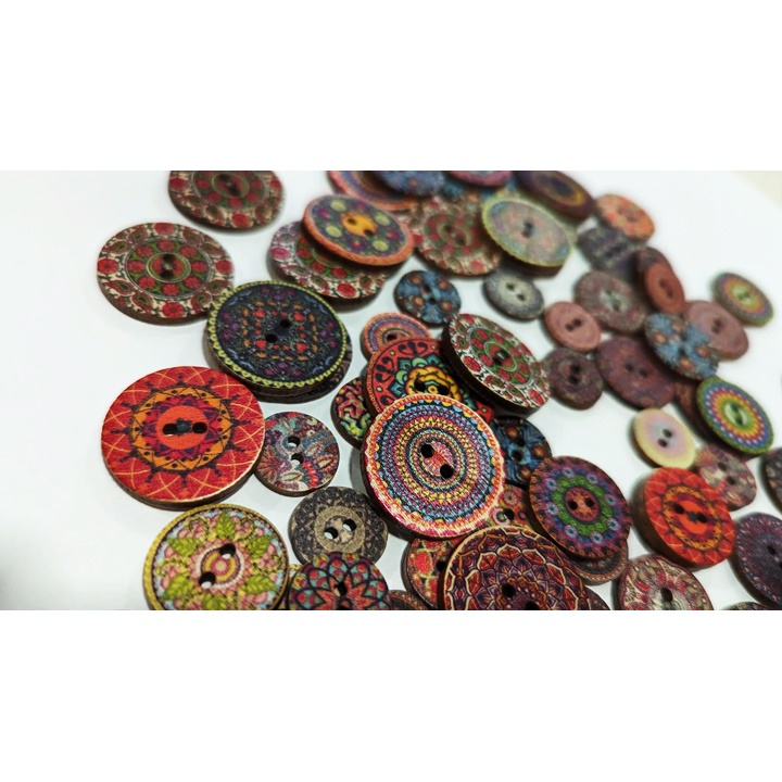 Drewniane guziki w stylu retro to dekoracyjny i praktyczny dodatek do różnego rodzaju produktów tekstylnych. Opakowanie zawiera 20 sztuk guzików o różnych wzorach, dostępnych w trzech rozmiarach - 15 mm, 20 mm i 25 mm. Dzięki swoim walorom estetycznym i różnorodności idealnie nadają się do ozdabiania odzieży, akcesoriów, zabawek tekstylnych czy dekoracji domowych. Guziki zostały zaprojektowane z myślą o wprawnych rękach rzemieślników, projektantów mody, a także hobbystów poszukujących oryginalnego i stylowego sposobu na ożywienie swoich kreacji. Dzięki różnorodności wzorów i kolorów, guziki hobbystyczne oferują szeroki zakres zastosowań, czy to w klasycznym krawiectwie, przy tworzeniu oryginalnej biżuterii, czy też jako kreatywne elementy w projektach scrapbookingowych. Ich unikalny wygląd i drewniany materiał dodają produktom wyjątkowego charakteru i ciepła.
