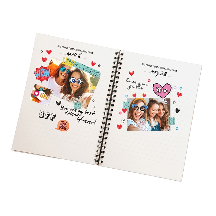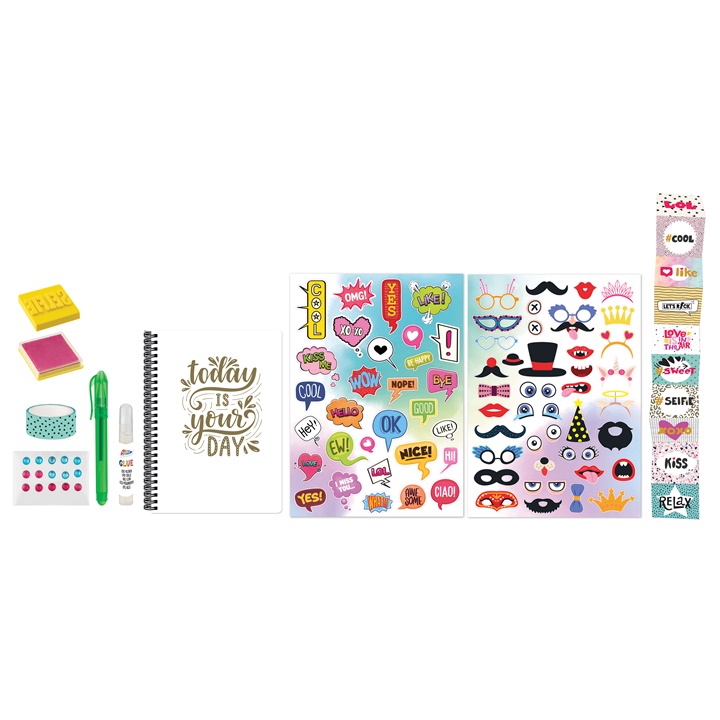 Przypominaj sobie każdego dnia, że "dziś jest twój dzień" dzięki temu wyjątkowemu dziennikowi selfie do scrapbookingu. Idealny towarzysz dla każdego, kto uwielbia robić zdjęcia i dzielić się swoimi doświadczeniami. Ten dziennik jest dla każdego, niezależnie od tego, czy jesteś młodym nastolatkiem, czy dorosłym, który chce zachować wspomnienia cennych chwil. W zestawie znajdziesz spiralny dziennik z motywującym napisem, kolorowy długopis, naklejki z różnymi wzorami i wyrażeniami oraz inne akcesoria do ozdabiania stron. Stwórz własny kolaż, przyklej ulubione zdjęcia i użyj kolorowych naklejek, aby stworzyć swój własny styl. Notatnik jest idealny dla każdego, kto chce zapisywać swoje codzienne przygody, podróże lub osobiste osiągnięcia. Dzięki niewielkim rozmiarom można go zabrać ze sobą zawsze i wszędzie, aby nie przegapić żadnej wyjątkowej chwili! Poświęć chwilę dla siebie, zatrzymaj się i zapisz swoje doświadczenia za pomocą tego pamiętnika selfie. Pozwól swojej kreatywności płynąć swobodnie i stwórz swój własny album pełen kolorów i zabawy!