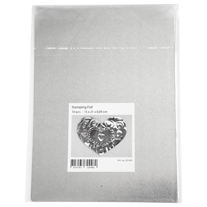 Úvod » Hobby materiały » Folia do wytłaczania embossingu srebrna / 10 arkuszy