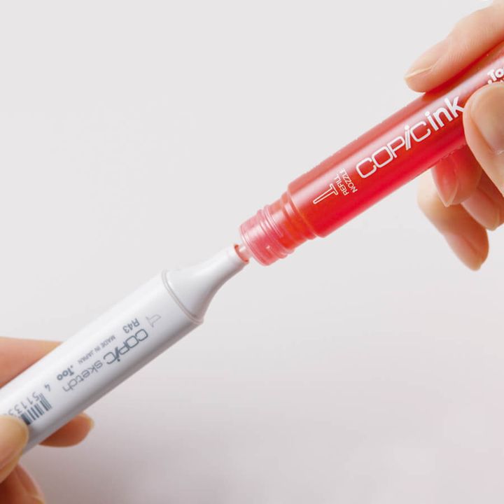 Marka COPIC oferuje pełną gamę produktów do prac graficznych, projektowych i ilustracyjnych. Profesjonalne dwustronne markery Copic są idealnym narzędziem graficznym, szczególnie dla profesjonalnych artystów w agencjach reklamowych, studiach graficznych czy projektowych. Zawierają trwały tusz na bazie alkoholu, który jest nietoksyczny, szybkoschnący i wodoodporny. Markery zostały zaprojektowane tak, aby można je było uzupełniać, co minimalizuje odpady z tworzyw sztucznych. Po zużyciu można je uzupełnić za pomocą COPIC Ink. Oznacza to, że już nigdy nie będziesz musiał rozstać się z ulubionym markerem. Nowa konstrukcja umożliwia szybkie i czyste uzupełnianie zużytego wkładu z absolutną precyzją. Wkład zawiera tusz na bazie alkoholu, który jest szybkoschnący, wodoodporny, nietoksyczny i prawie bezwonny. Nadaje się do wszystkich typów markerów COPIC. Za pomocą jednej butelki tuszu możemy napełnić COPIC Classic i COPIC Sketch do 7 razy, COPIC Ciao 9 razy i COPIC Wide 3 razy. Ponadto cienka i zmienna końcówka może być używana do tworzenia bez pomocy markera. Może być używany do aerografu lub klasycznego szkicowania i malowania pisakami i pędzlami.