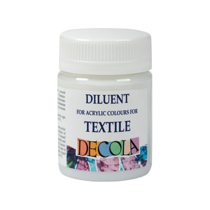 Riedidlo zo série Decola je určené na riedenie akrylových farieb na textil, znižuje intenzitu farieb a zlepšuje farebný tok. Zároveň slúži aj na vytváranie špeciálnych akvarelových efektov pri maľbe. Textilné produkty, u ktorých bolo použité riedidlo Decola získavajú lepšiu odolnosť voči vode.